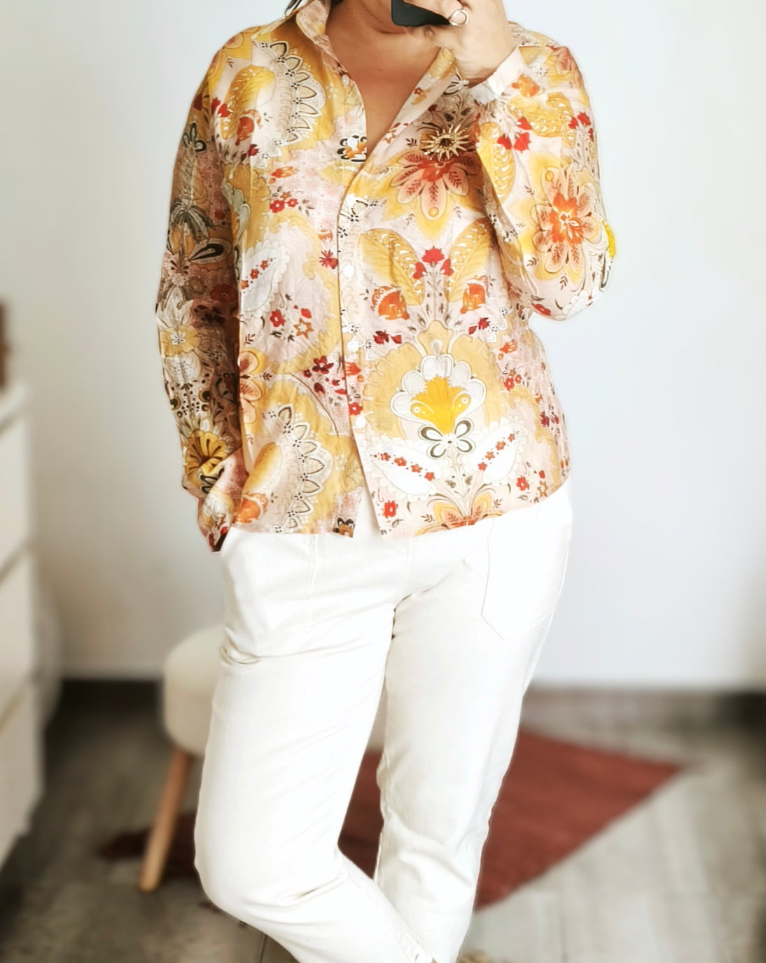 Découvrez la Chemise Linda ! Disponible en tailles S à XL, cette chemise en viscose (70%) et polyester (30%) est légère et confortable. Parfaite pour tous les jours !