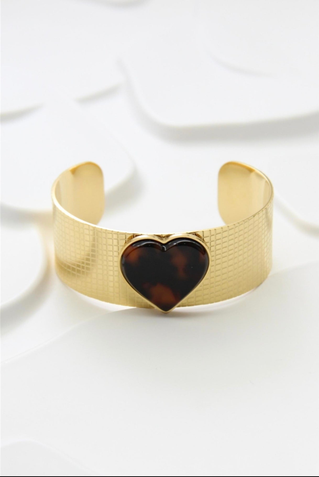 Découvrez notre manchette jonc "Résine" unique en son genre ! Avec son design réglable en acier inoxydable et son cœur léopard en résine, cette manchette élégante ajoutera une touche de féminité à toutes vos tenues. Parfait pour les amoureuses de la mode et de la nature !