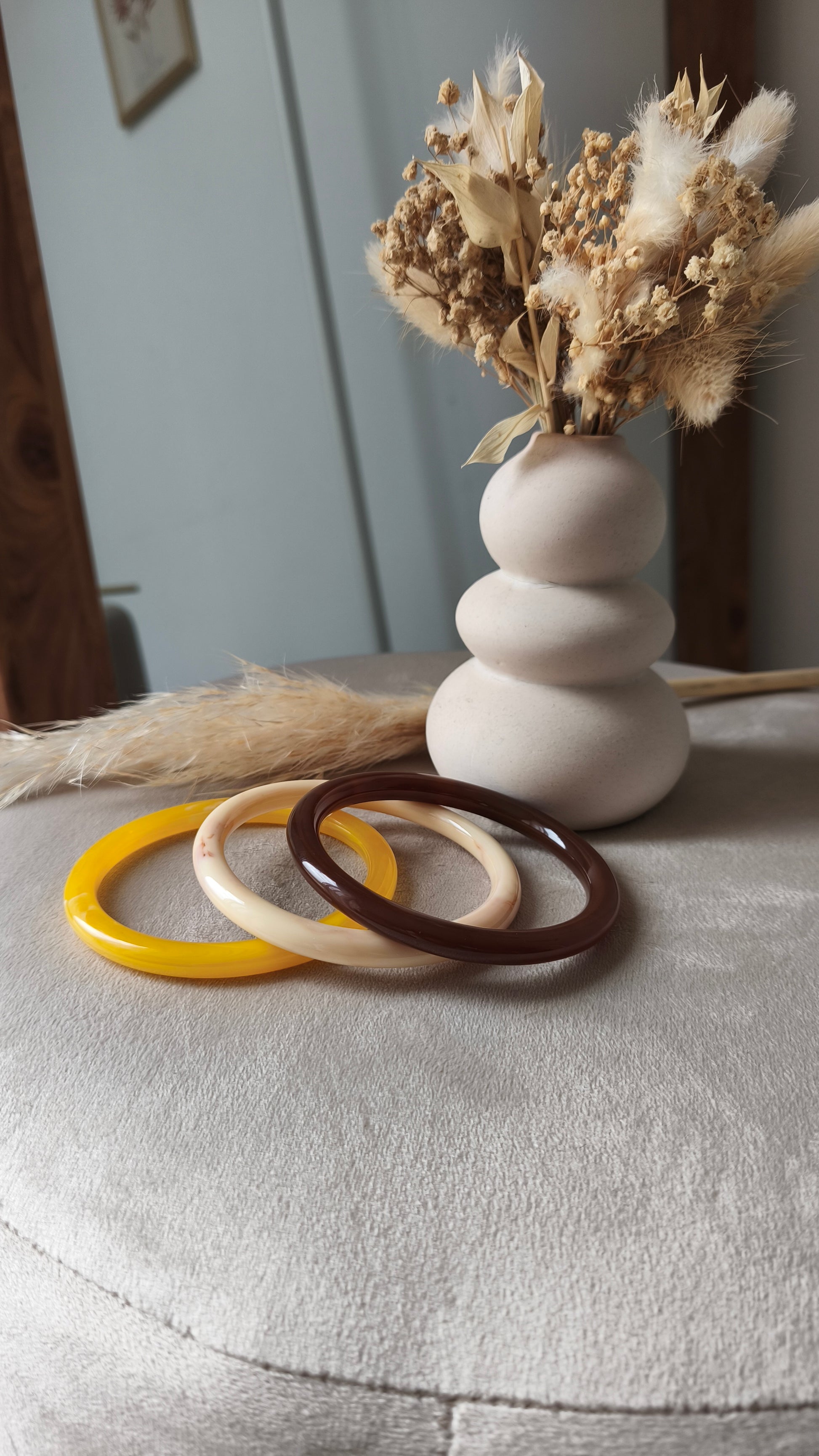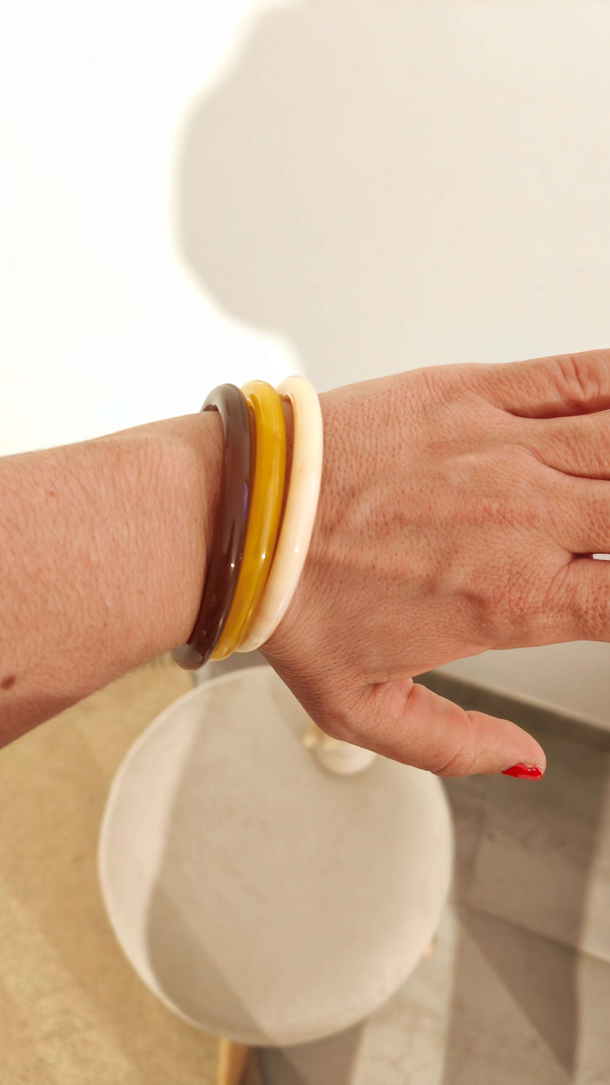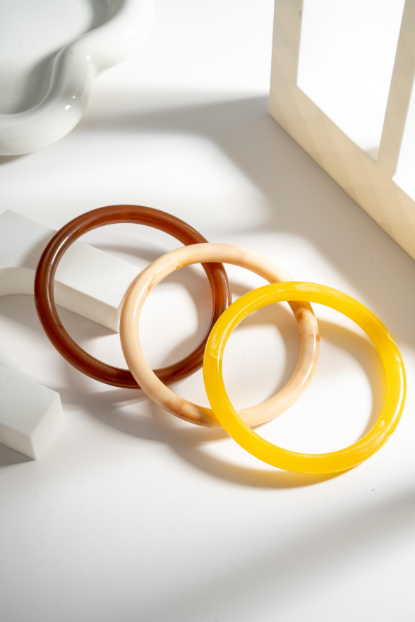 La parure de jonc "Brice" réunit trois bracelets en résine aux teintes captivantes : un brun profond intemporel, un ivoire marbré sophistiqué et un jaune éclatant qui ravive l'ensemble. Portez-les individuellement pour une allure minimaliste ou superposez-les pour un effet rétro chic et affirmé. Légers et agréables à porter, ces joncs s'adaptent à tous vos styles, du quotidien décontracté aux occasions plus formelles. Un trio polyvalent qui transforme chaque tenue en création personnelle et élégante.