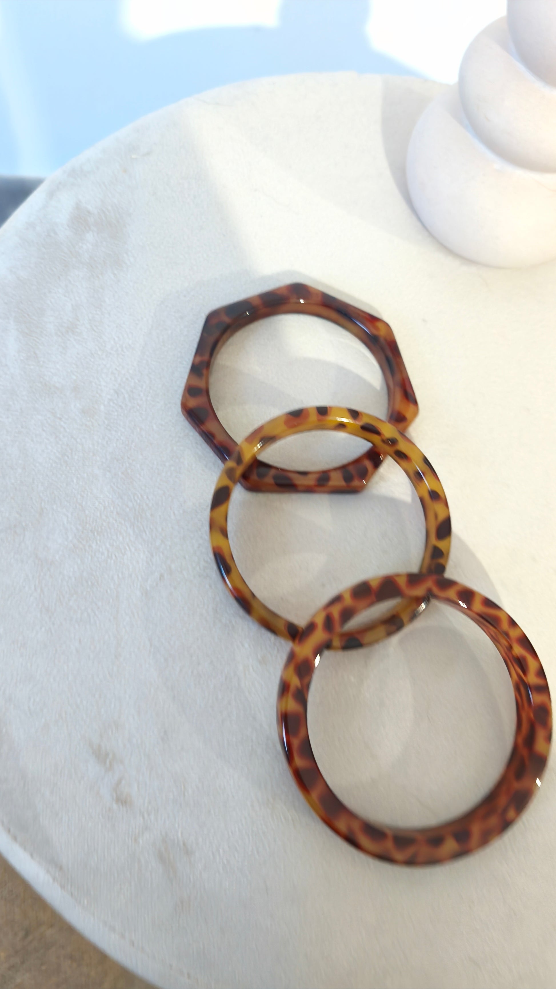 Apportez une touche sauvage à votre tenue avec notre parure de joncs en résine "Lulu" ! Composée de 3 formes léopard, elle ajoute une touche de couleur et de style unique à votre look. Fabriquée avec une résine de qualité, elle est confortable à porter et durable dans le temps.