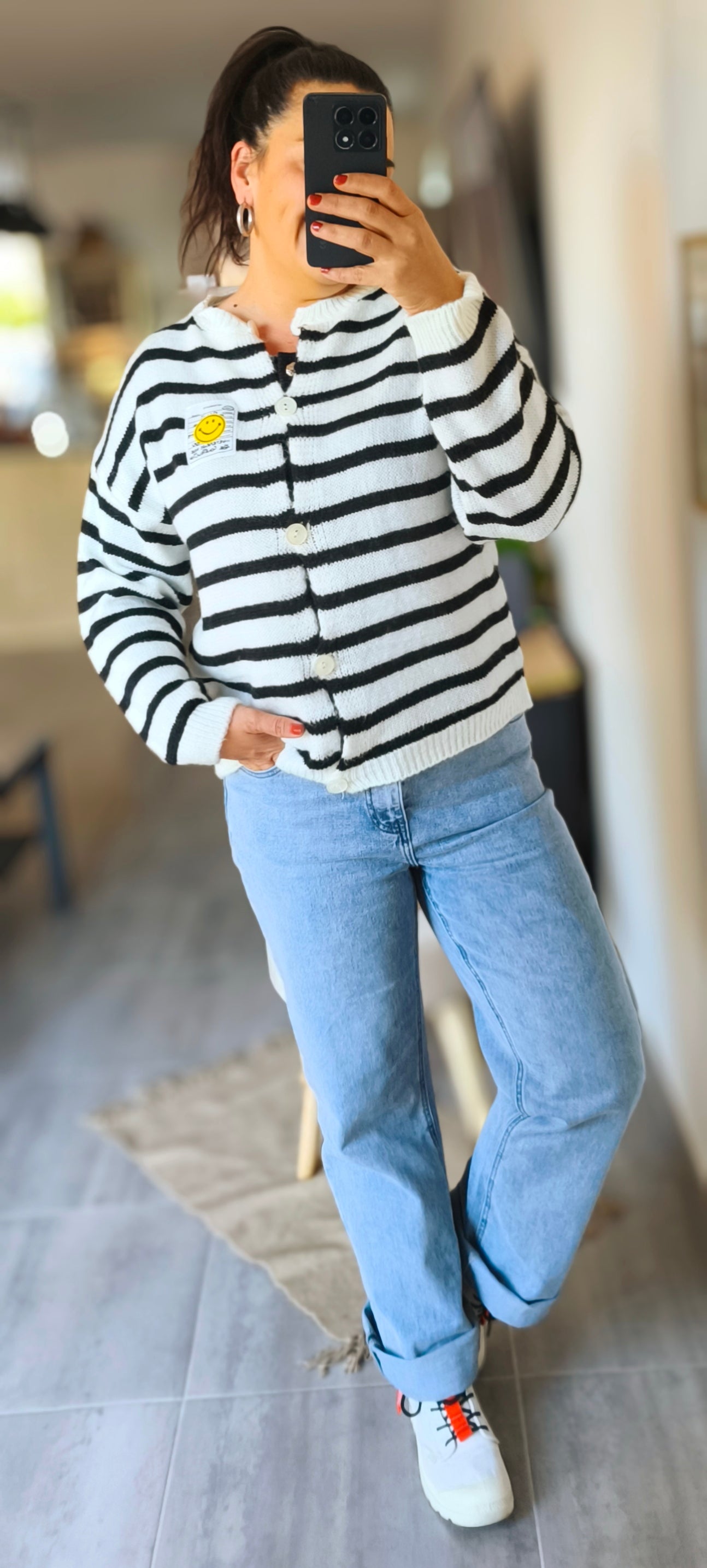 Le gilet maille "Leslie" est un choix à la fois élégant et confortable. Avec une composition de 10% laine, 20% viscose, 30% nylon et 40% acrylique, ce gilet offre une chaleur et une douceur exceptionnelles. Le marinière orné d'un smiley ajoutera une touche de style amusante à votre tenue. Restez à la mode et au chaud avec le gilet "Leslie" !"